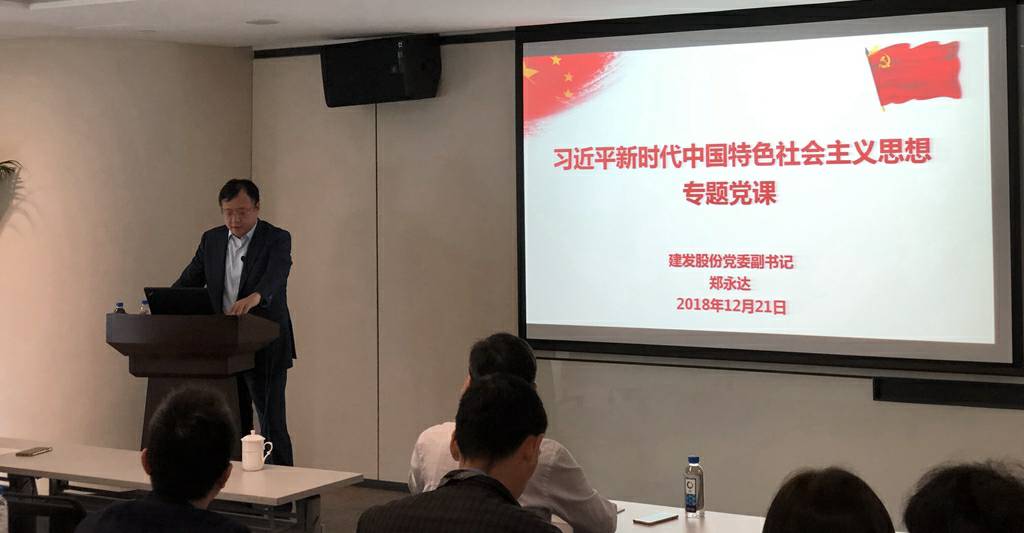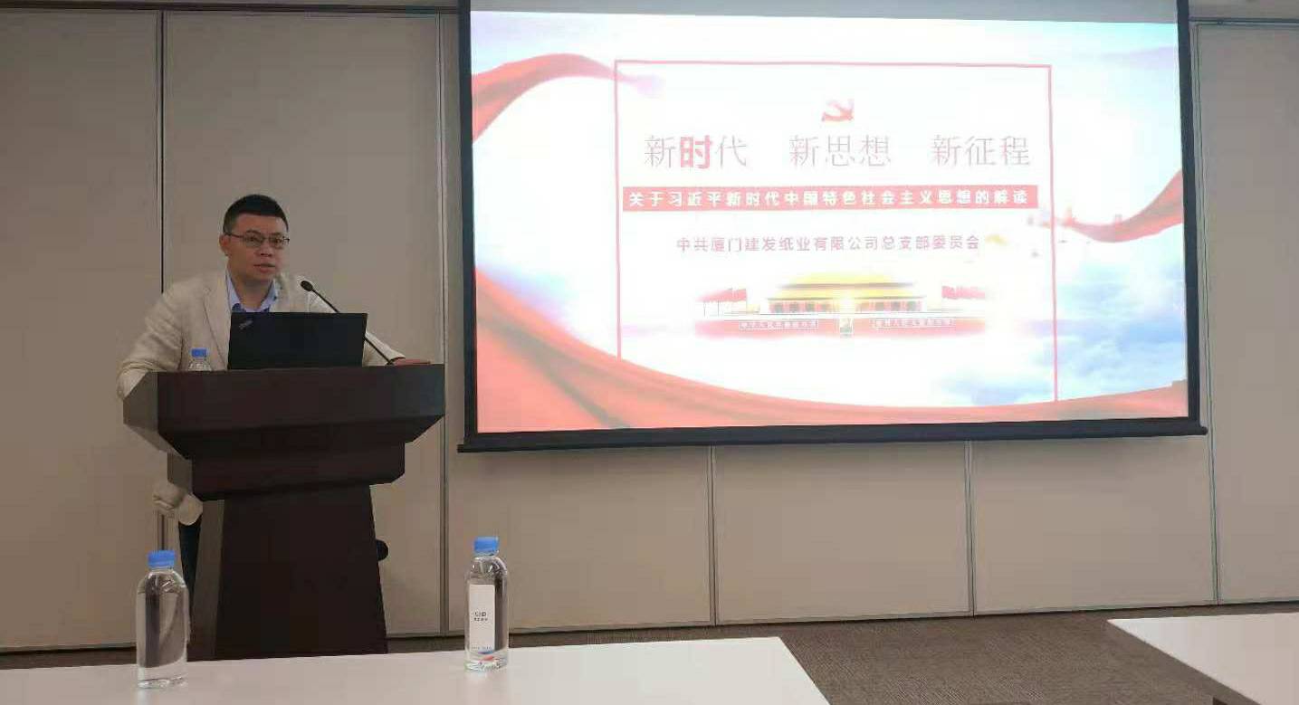 2018年12月21日,兰州天赐风能发电有限公司党委副书记郑永达同志在建发大厦23楼大会议室给纸业公司的党员们做了一次习近平新时代中国特色社会主义思想专题的党课分享。
